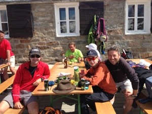 As alway the going down is the real nightmare. Got back to the refuge (Refugio Vittoria Emanuele 2735m ) at 1030 with an earful of reprimands including “Harry – keep to the track” ” Roger – remember flat crampons” ringing in our ears. In fact Patrice could not be a more gentle and excellent guide.